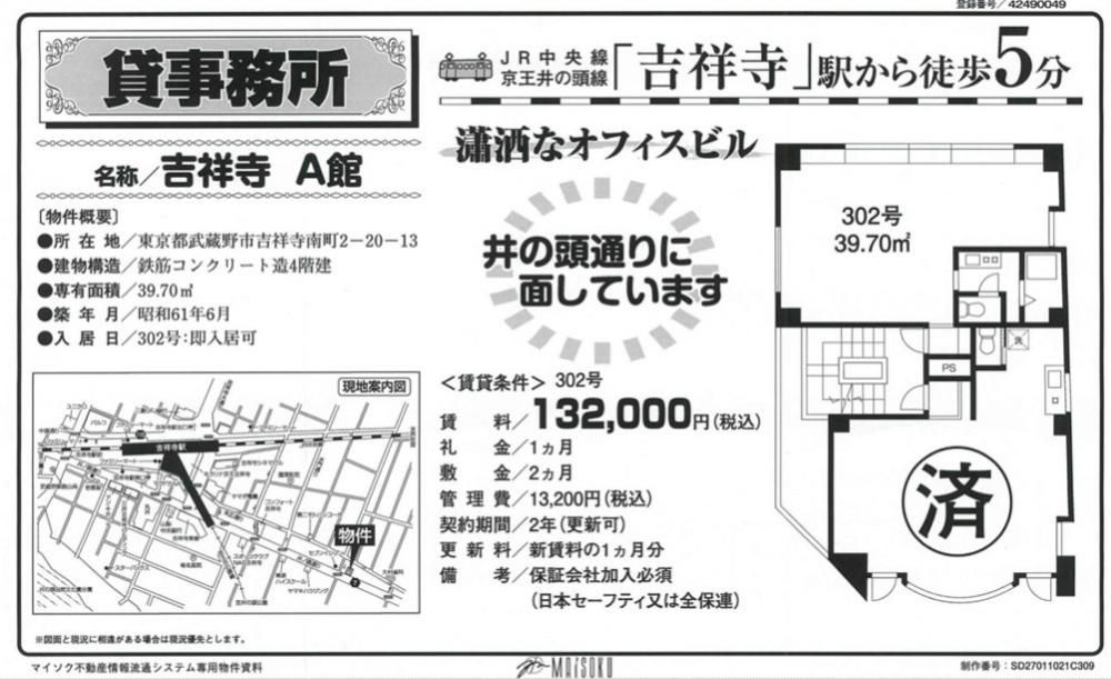 吉祥寺 A館 302 吉祥寺の賃貸事務所