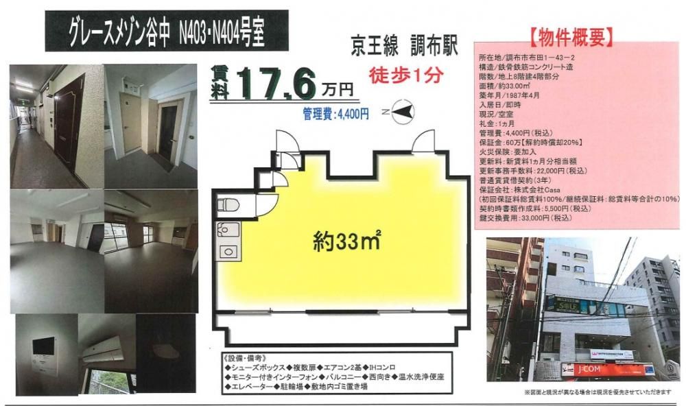 【スタッフからのイチオシポイント】グレースメゾン谷中S棟【調布駅徒歩1分☆事務所です!(店舗利用は不可)】4階部分になります!室内エアコン2基あり。トイレ・ミニキッチン。西向き!IHコンロ・モニター付きインターフォン!エレベーターあり!